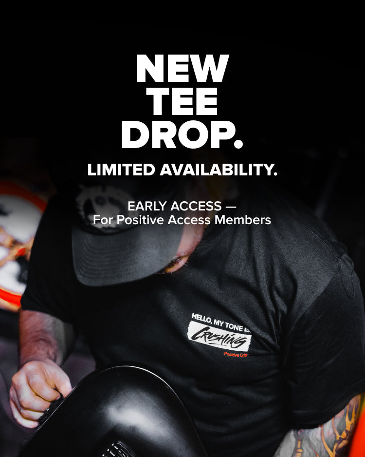 The PG Tone Tee is Positive Grid’s first limited-edition streetwear drop — a 100% cotton, heavyweight T-shirt designed as a creative canvas for guitarists and tone makers. Inspired by the classic “Hello, my name is” tag, this shirt reimagines it as “HELLO, MY TONE IS” — a nod to your unique sound and style.