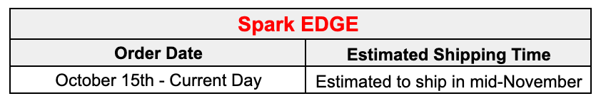 Please see table below for the latest shipping estimates for the US region: